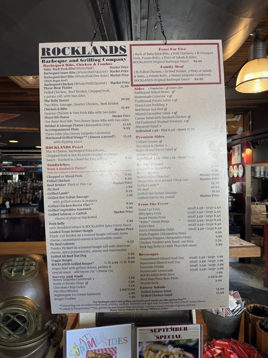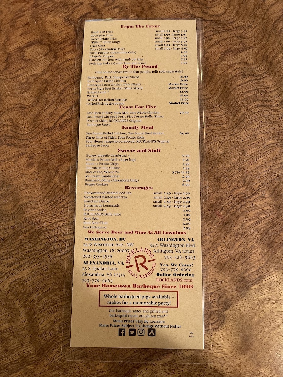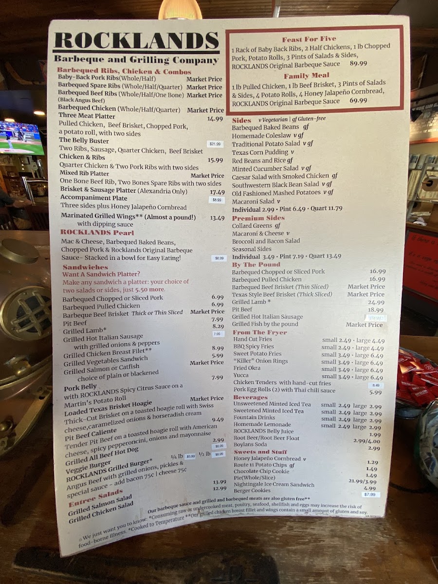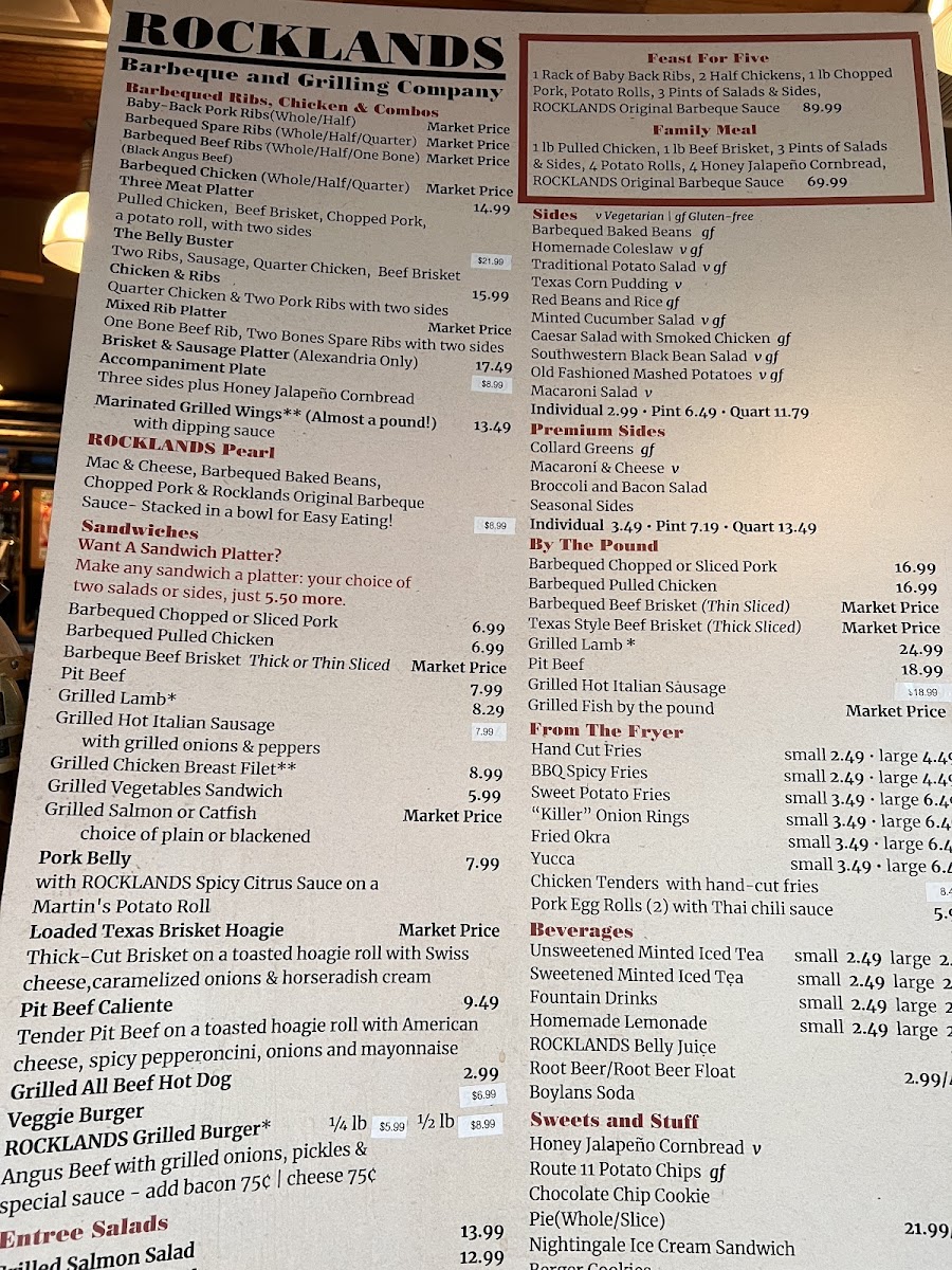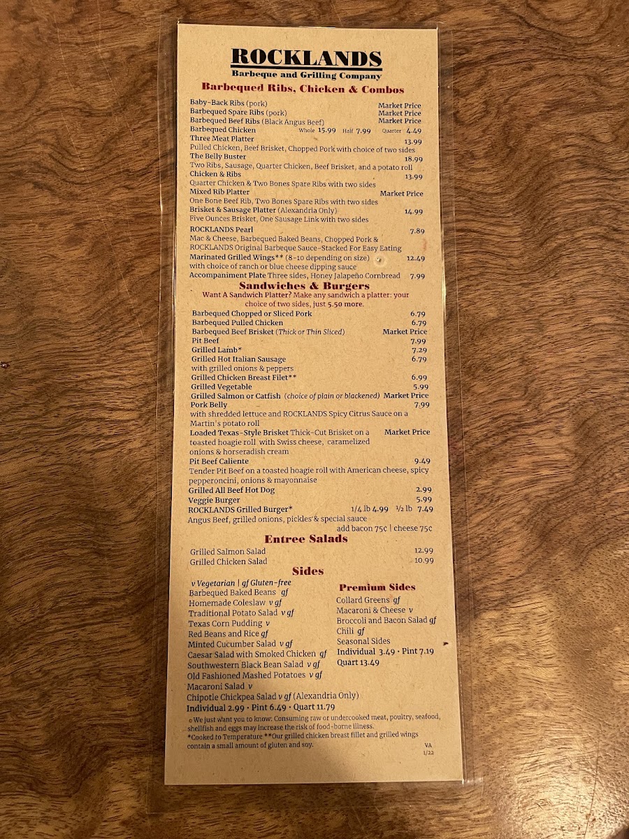 Step into Rocklands Barbeque & Grilling Company, a vibrant gem nestled in Arlington, VA, where the irresistible aroma of smoked meats greets you at the door. This beloved establishment specializes in crafting a delightful array of barbecue dishes that truly capture the essence of Southern flavor. Whether you're a barbecue aficionado or a casual diner, Rocklands offers something to satisfy every palate.